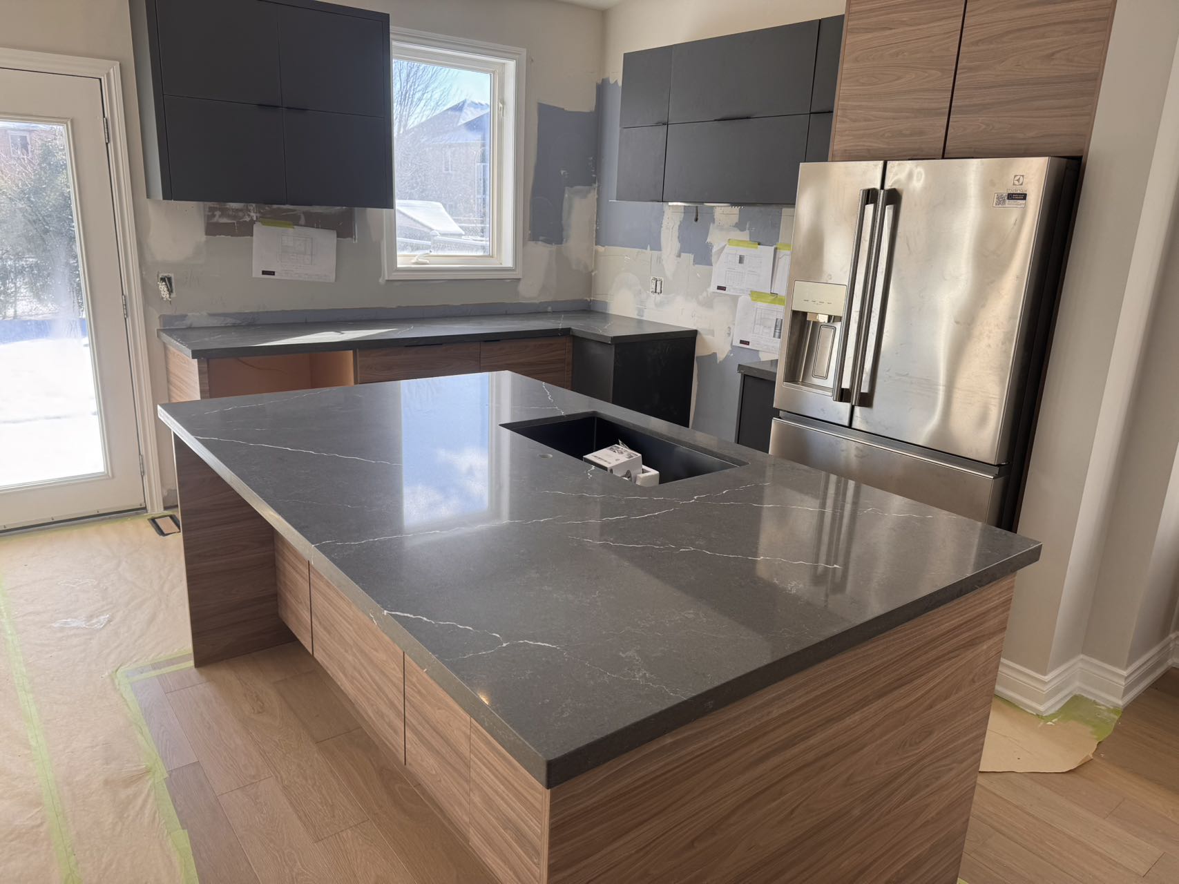 If you have a large kitchen, you may be able to get away with more than one material for the countertops. If it suits the overall design scheme, it’s okay to do a bit of mixing and matching. Look through our catalog to see all of the colours and styles available.